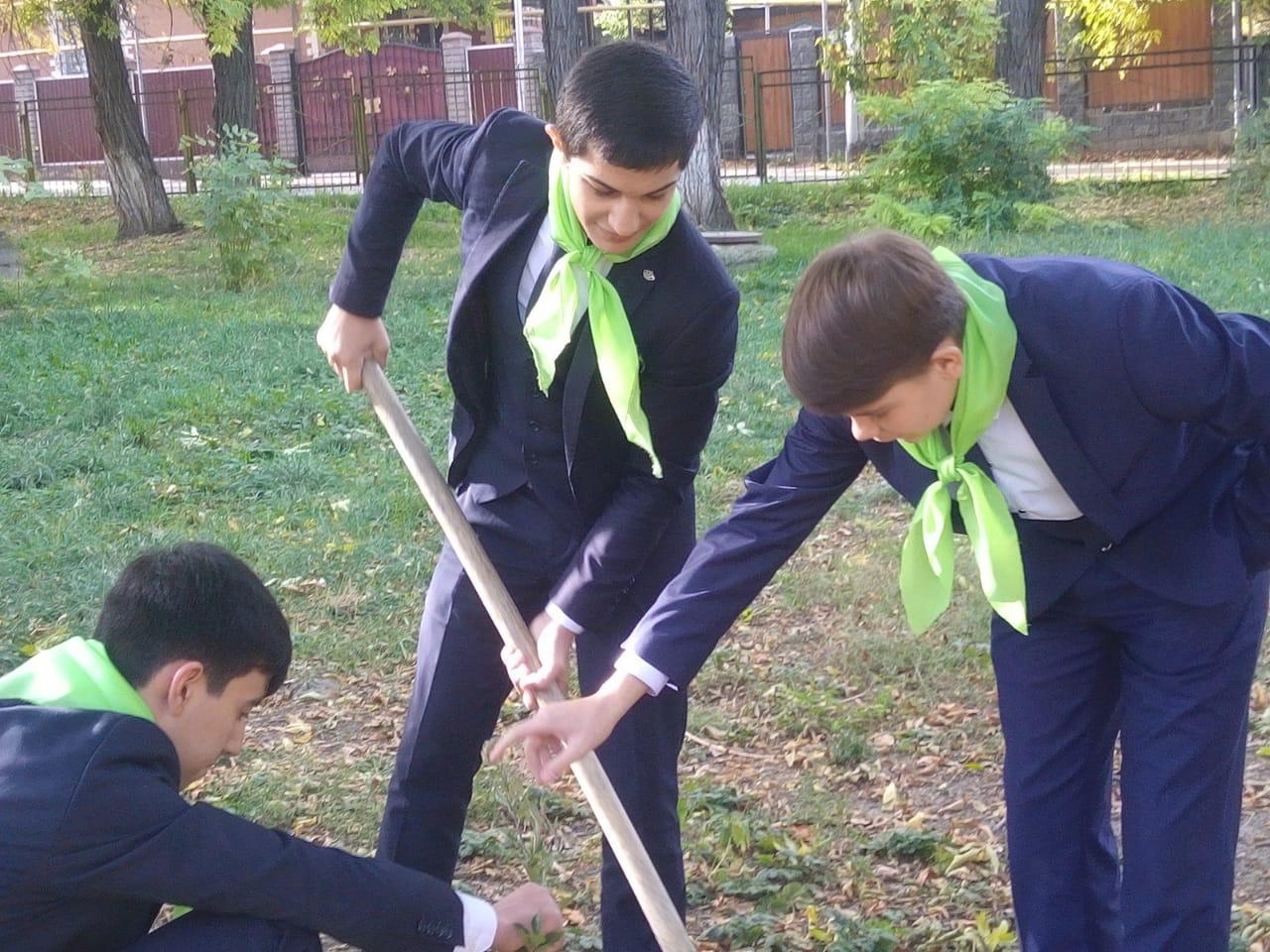 10 октября на территории школы были высажены саженцы 10 яблонь. Это послужило примером для младших школьников, ведь посадку поручили самым- самым примерным детям, которые идут впереди и по учебе и дисциплине.
