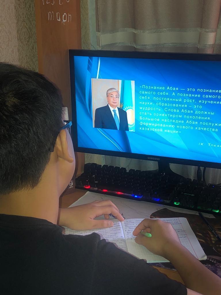 18.05.2020 Білім беру мекемелерінің қашықтандан оқутуға көшуіне байланысты кезекті "Адалдық сағаты" Республикалық акциясын онлайн форматында өткізу жоспарланды.Ұлы Абайдың 175 жылдық мерей тойы орай"Адалдықты мұра еткен Ұлы Абай"атты сынып сағаты өткізілді.ЖББ №99 мектебіміздің оқушылары телеарналар және бейне дәрістер арқылы көріп,жақсы әсерде қалды.