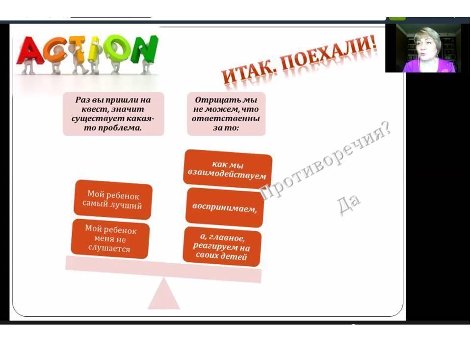 13 қыркүйек 2020 0 1 2 3 4 5 Онлайн Родительская гостиная 11 сентября 2020 г в онлайн режиме на платформе ZOOM прошла родительская гостиная - Анонс квеста для родителей #Как достучаться за 5 дней до своего ребенка, который провела педагог-психолог Омилаева Л.Н. С понедельника квест стартует.