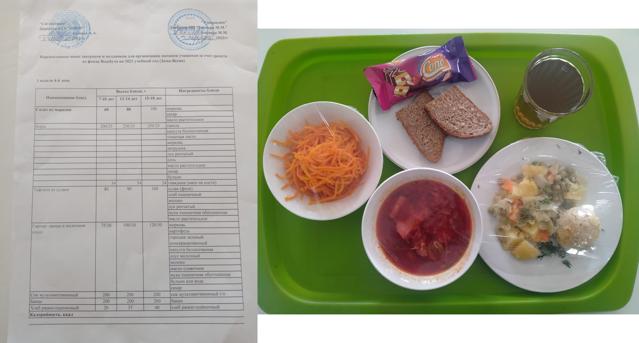 Перспективное меню на 1 неделю 2 день 2022. Перспективалы мәзір 1