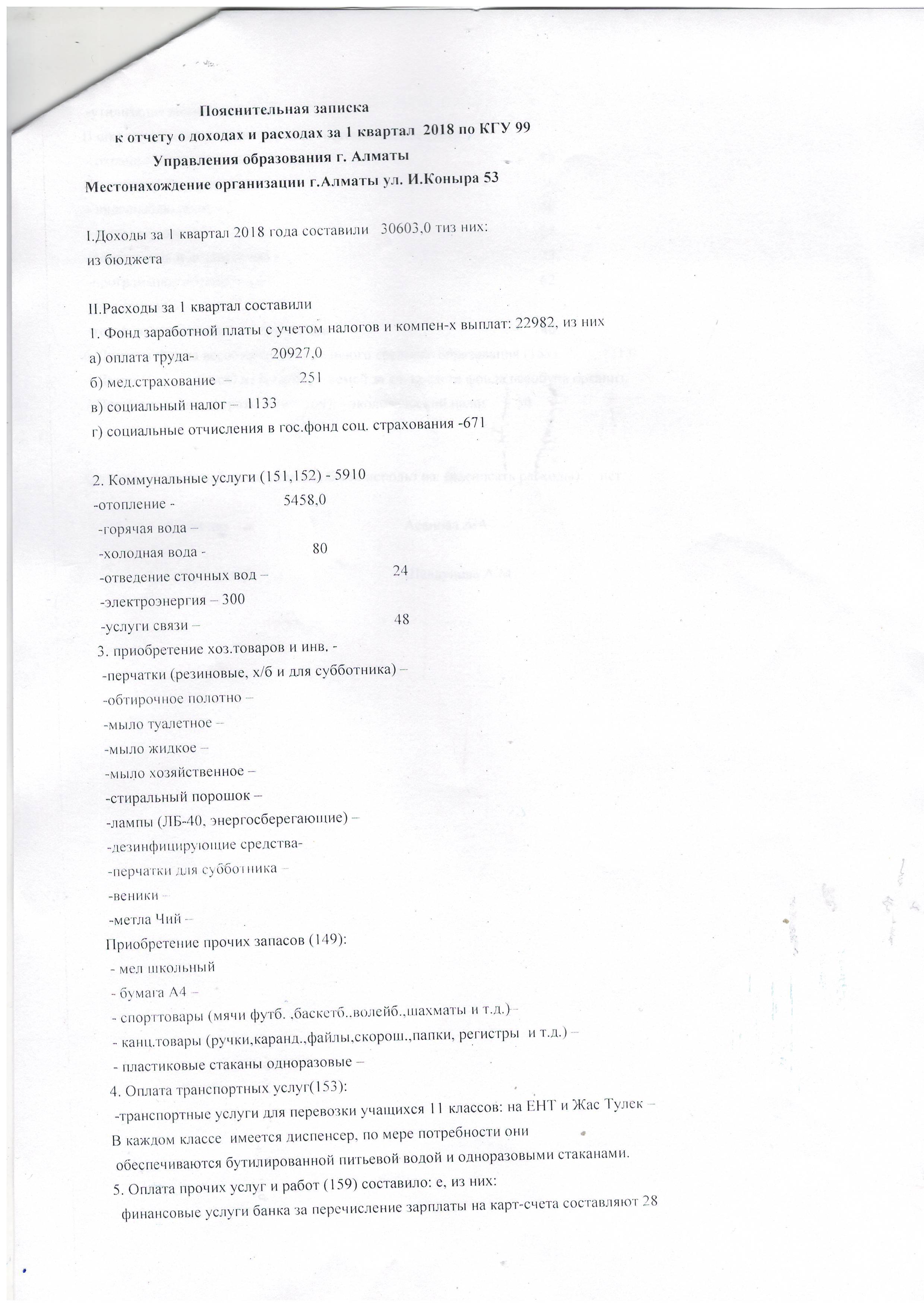 » Отчет о доходах и расходах за 1 кв.2018