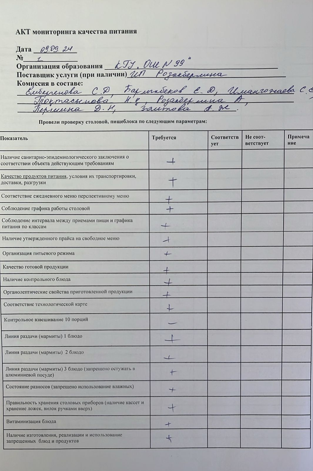 09 қыркүйек 2024 0 1 2 3 4 5 Тамақтандырудың қыркүйек айына сапалық бақылау АКТ-і/ АКТ мониторинга Тамақтандырудың қыркүйек айына сапалық бақылау АКТ-і/ АКТ мониторинга качества питания за сентябрь