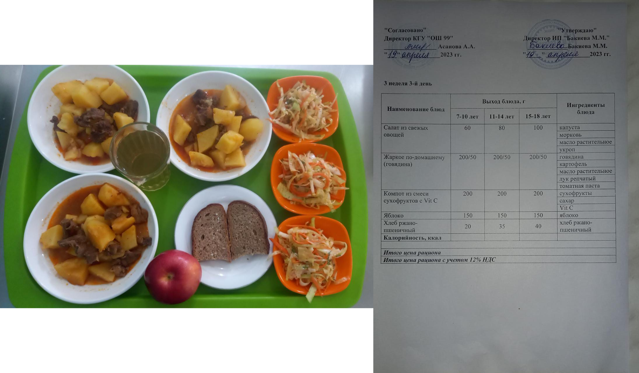 19 сәуір 2023 0 1 2 3 4 5 19 сәуірге арналған ас мәзірі / Контрольное блюдо на 19 апреля Бақылау тағамдары 19.04.2023 (1-4 сыныптар үшін) және аз қамтылған отбасы балалары, оның ішінде көп балалы отбасылар балалары және ОБПР және АӘК алушылардың балалары