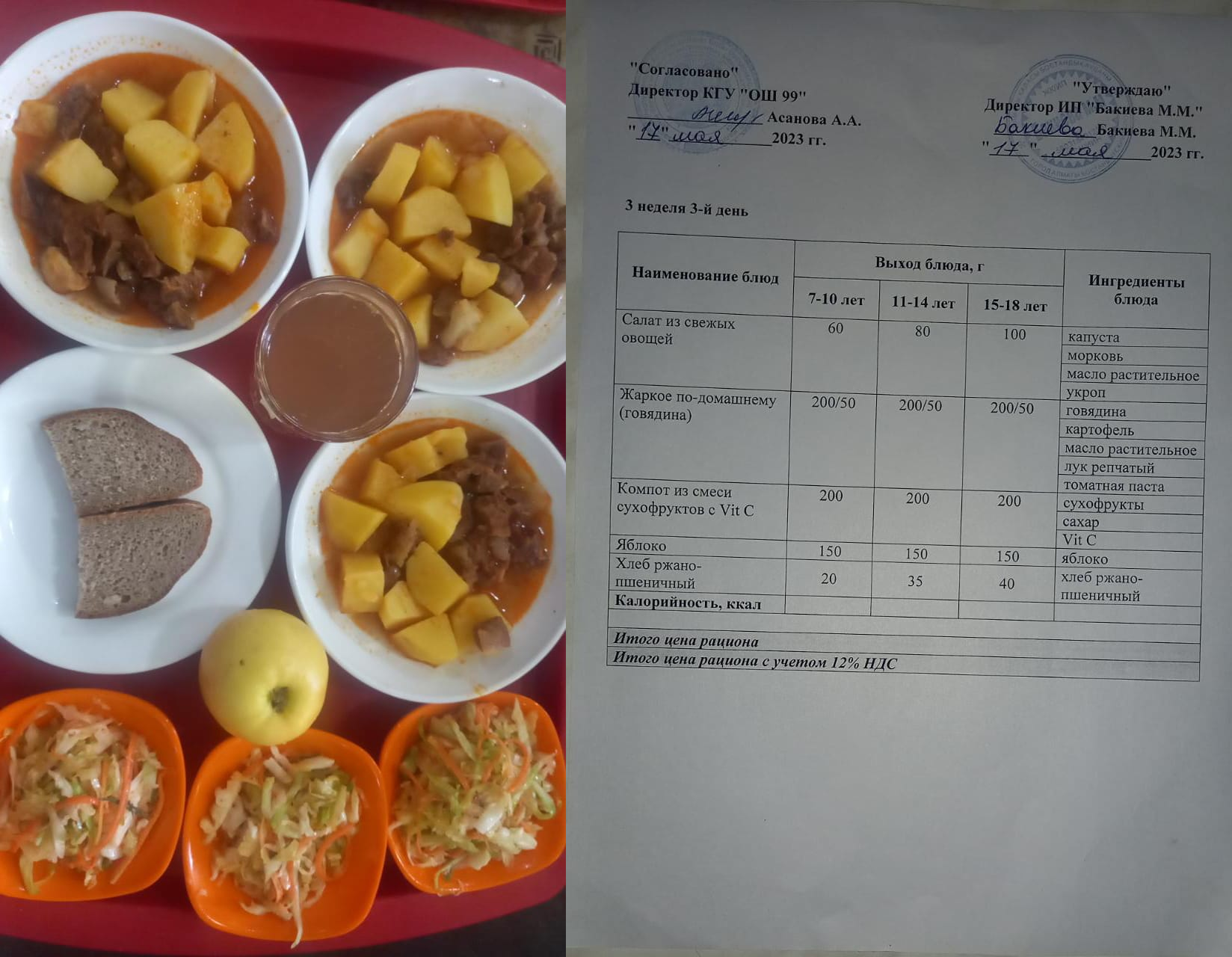 17 мамыр 2023 0 1 2 3 4 5 17 мамырға арналған ас мәзірі / Контрольное блюдо на 17 май Бақылау тағамдары 17.05.2023 (1-4 сыныптар үшін) және аз қамтылған отбасы балалары, оның ішінде көп балалы отбасылар балалары және ОБПР және АӘК алушылардың балалары