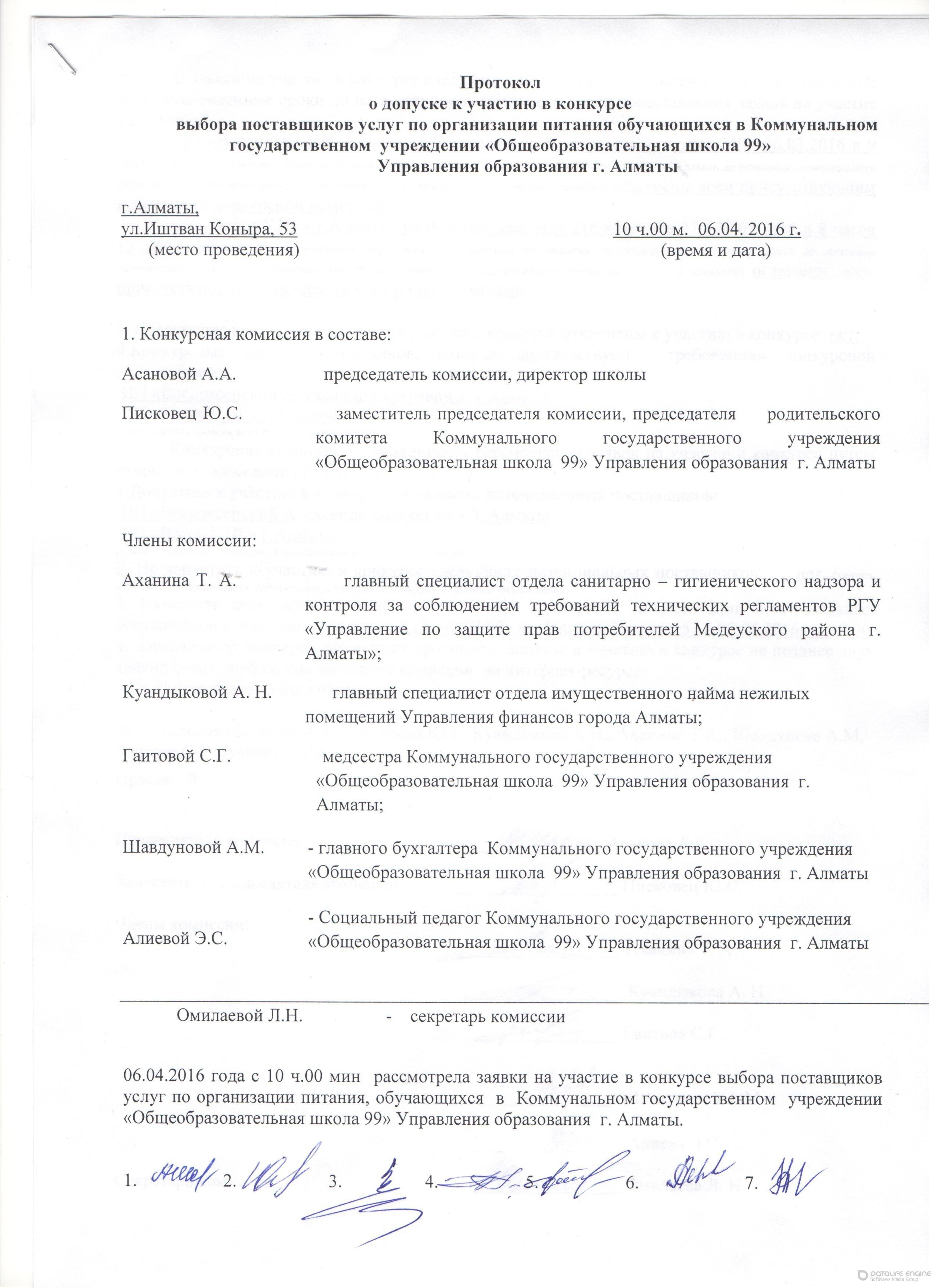 Протокол о допуске к участию в конкурсе