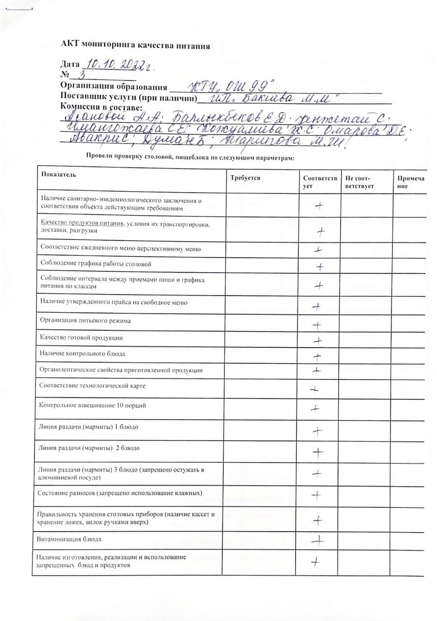План работы комиссии по мониторингу качества питания учащихся школы на 2022-2023 уч.год